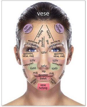 – az arc felső részén lévők gyakran a máj működésével függnek össze